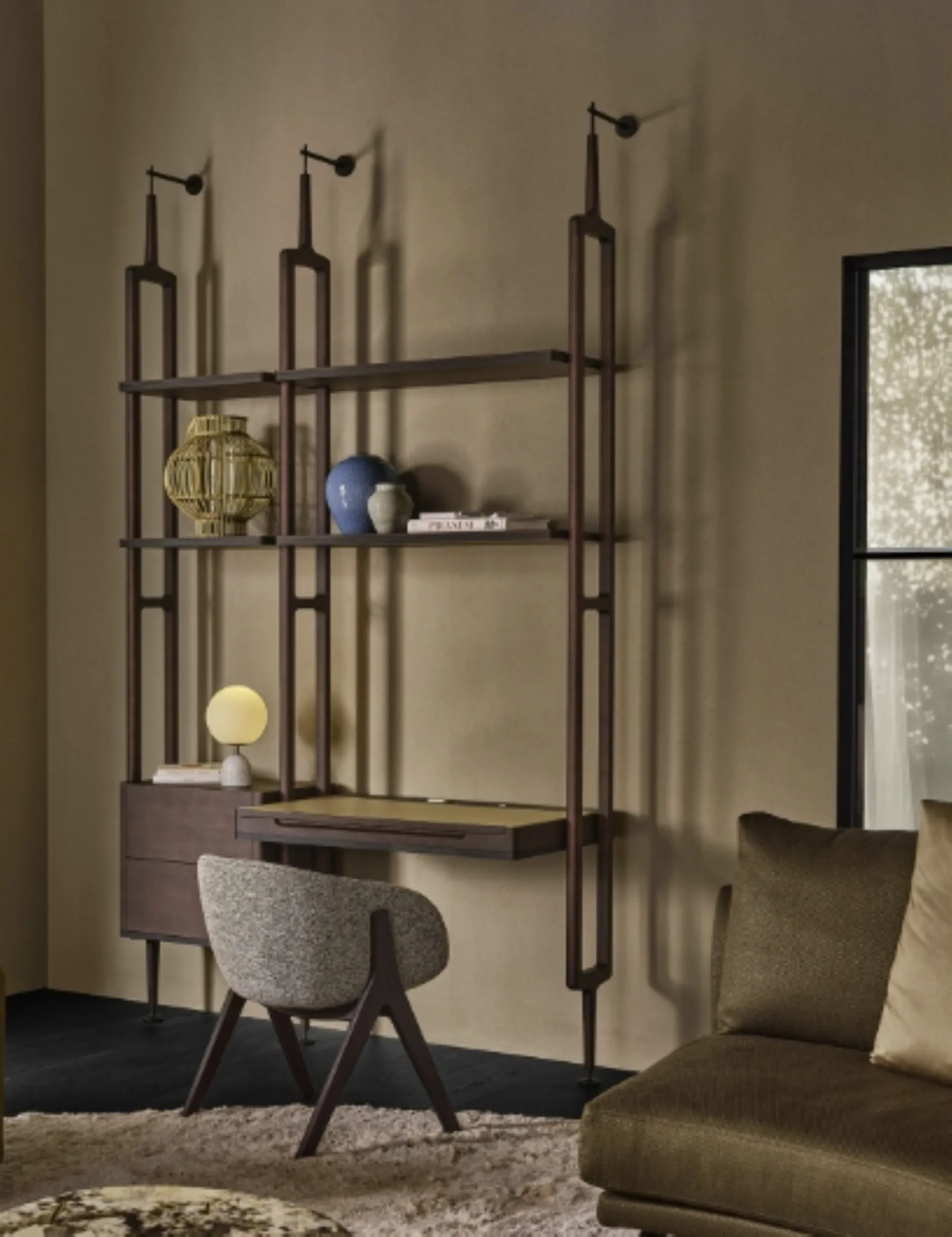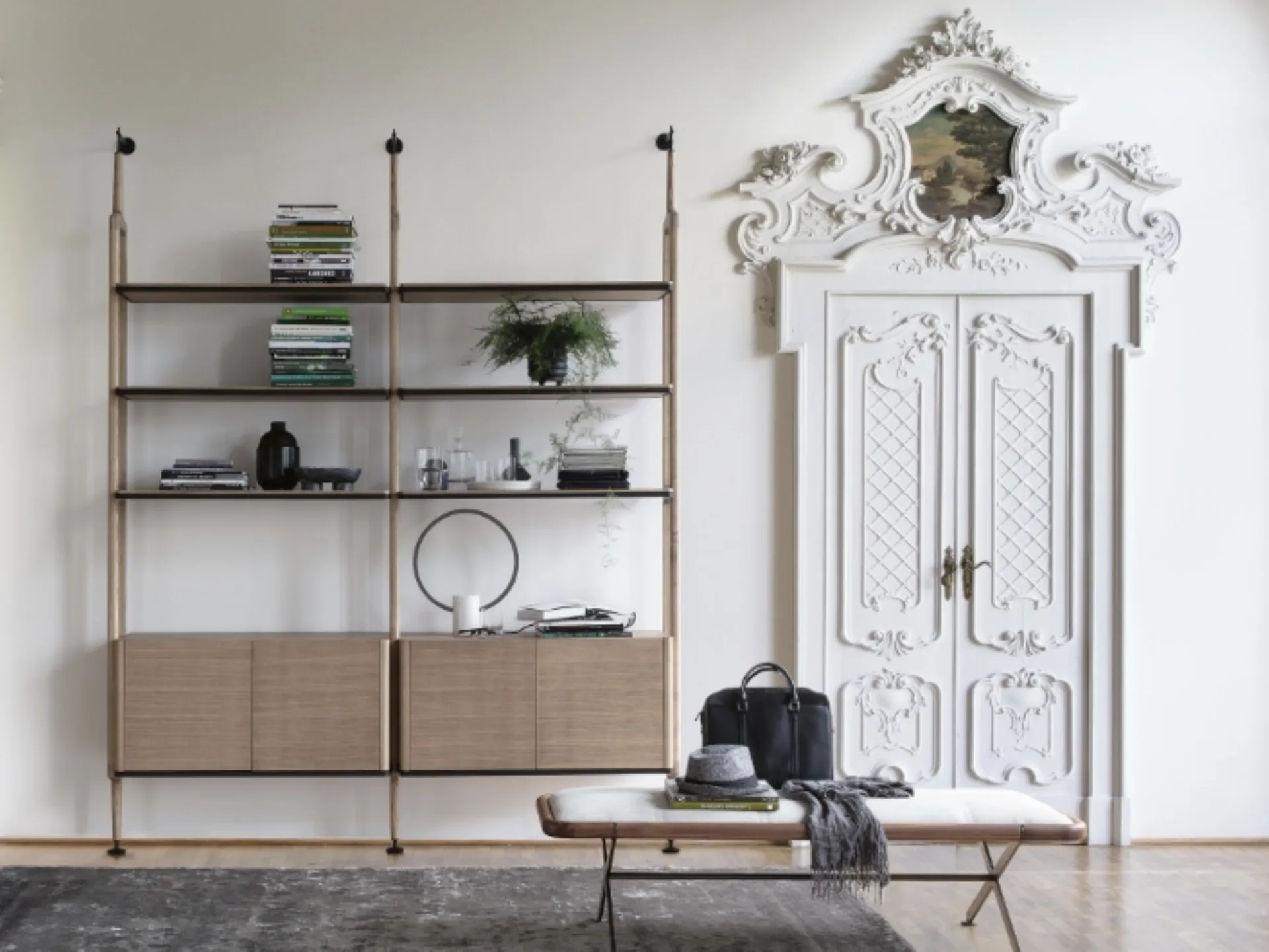 Thanks to the Aria wall bookcase by Porada, you can change the look of your home, making the most of every space with a great aesthetic effect. You will find various models of modern wall bookcases for the living area, such as the wooden model in the photo. The Aria wall bookcase by Porada is ideal for giving personality to your spaces: the different solutions offered by the company will allow you to furnish a practical and functional living room excellently. With the wooden bookcase available here, you can create a unique setting, characterized by the bold shapes of this model.