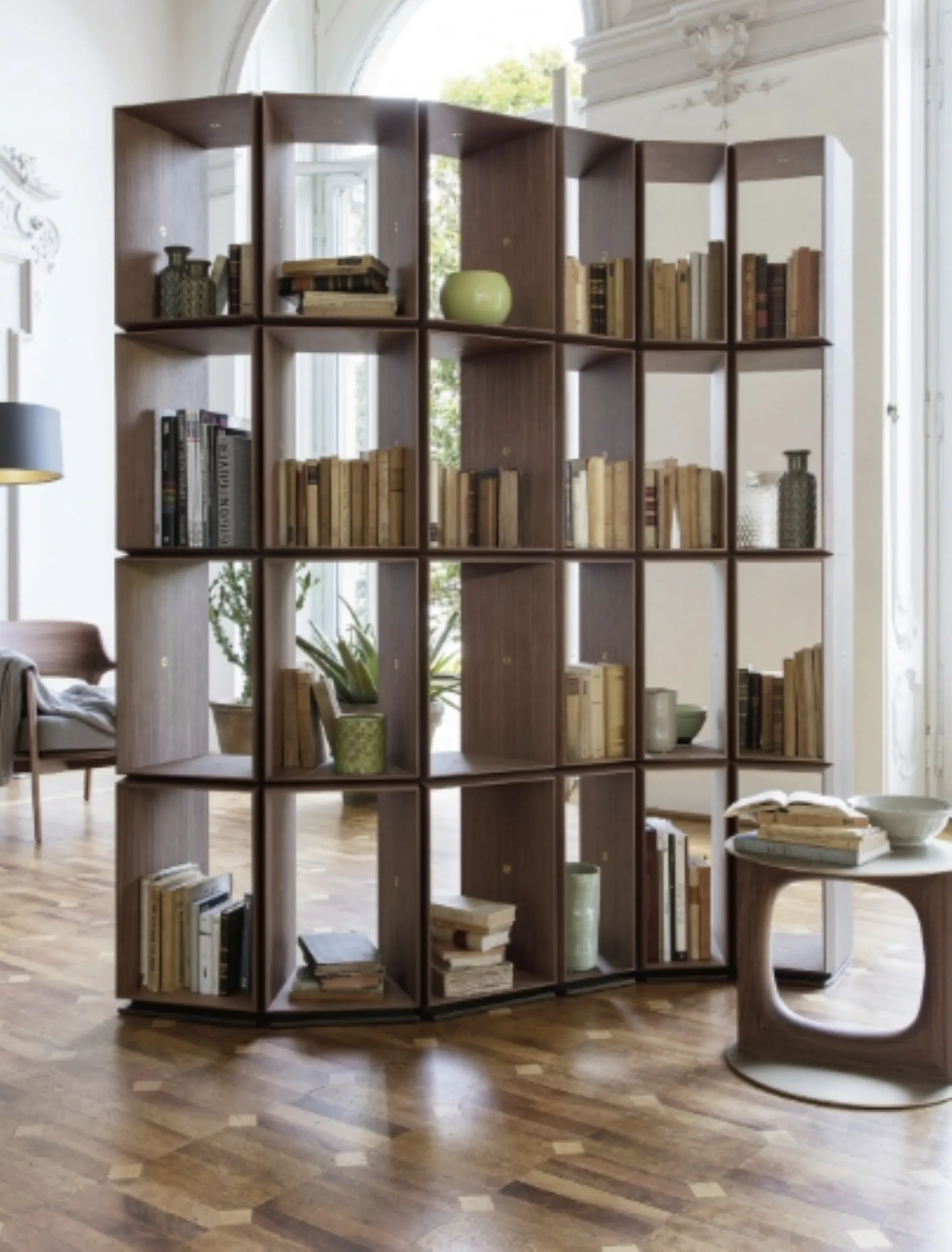 Decorating the living room is easy if you opt for the right bookcase to furnish your space, the important thing is that it is spacious and pleasant. Keeping the living room in order is not its only task: with this bookcase you can bring to life the furniture project you have always desired, making good use of every space. The model visible in the photo is the Modular Bookcase Demetra by Porada, one of the customizable living room furniture pieces from the renowned Home Furnishing brand. Discover at the best furniture retailers the most beautiful modular bookcases, including modern wooden ones ideal for enhancing living rooms of all kinds.