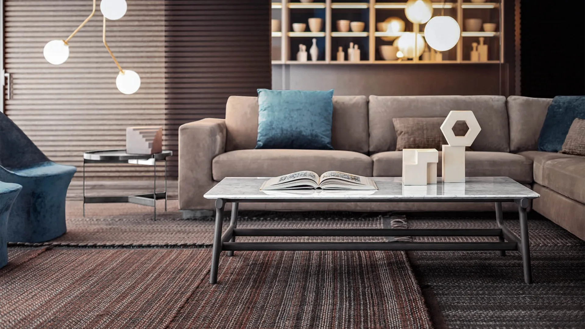 Particularly versatile and multifunctional, modern marble complements serve different purposes: they enhance functionality and the aesthetic value of the environment. In our store, you can see firsthand the quality of the modern marble coffee table models from the brand, just like this solution in the photo. The Fushimi marble coffee table by Pianca will add personality and charm to an interior furnished with modern furniture and accessories. Pianca's beautifully designed compositions enhance the living space with their colors and style, creating unique and stylish atmospheres.