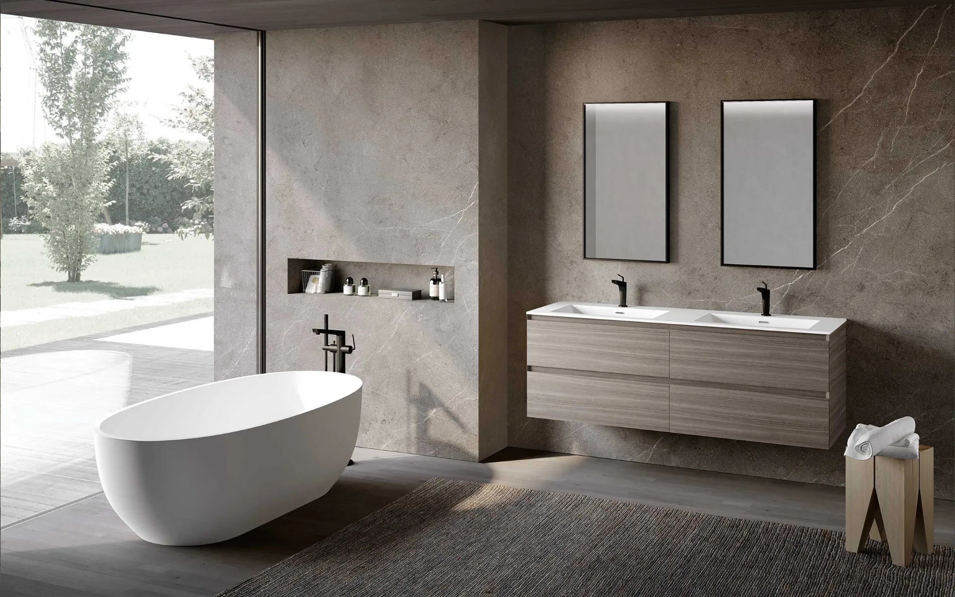The bathroom is the environment intended for relaxation and personal care practices, so it should be furnished combining practicality and design. Here we present the model of the suspended Bathroom Cabinet Block System Syntesi C32 by Baxar in melamine that perfectly enhances the space ensuring practicality. The colors, materials, and modules offered by the brand for modern Bathroom Furnishing with suspended bathroom furniture allow you to decorate various settings. With a wide variety of compositions from the brand Baxar, you can decorate the bathroom down to the smallest details, meeting your housing needs. Each project developed with the products of the brand can be characterized by all kinds of suspended bathroom furniture, always in top quality and durable materials.