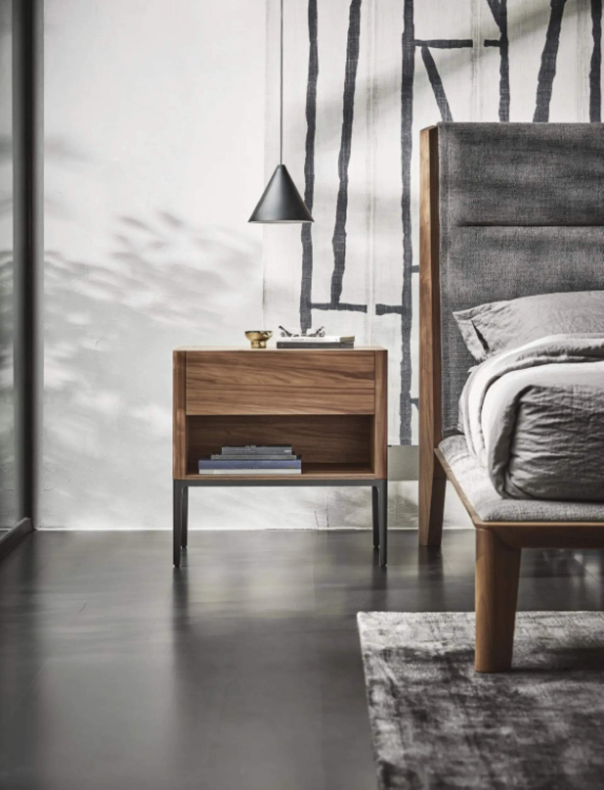 With our modern night groups from the Porada brand, specialists in home furnishings for the bedroom, you can create the bedroom of your dreams. Optimize your spaces by choosing coordinated compositions or create unique combinations of style and colors relying on the catalog of furniture and accessories for the bedroom that we offer, such as the wooden model visible in the photo, also customizable for you. Nara bedside table by Porada: contact us and get information on our furnishing proposals and furnish the room as you have always imagined.