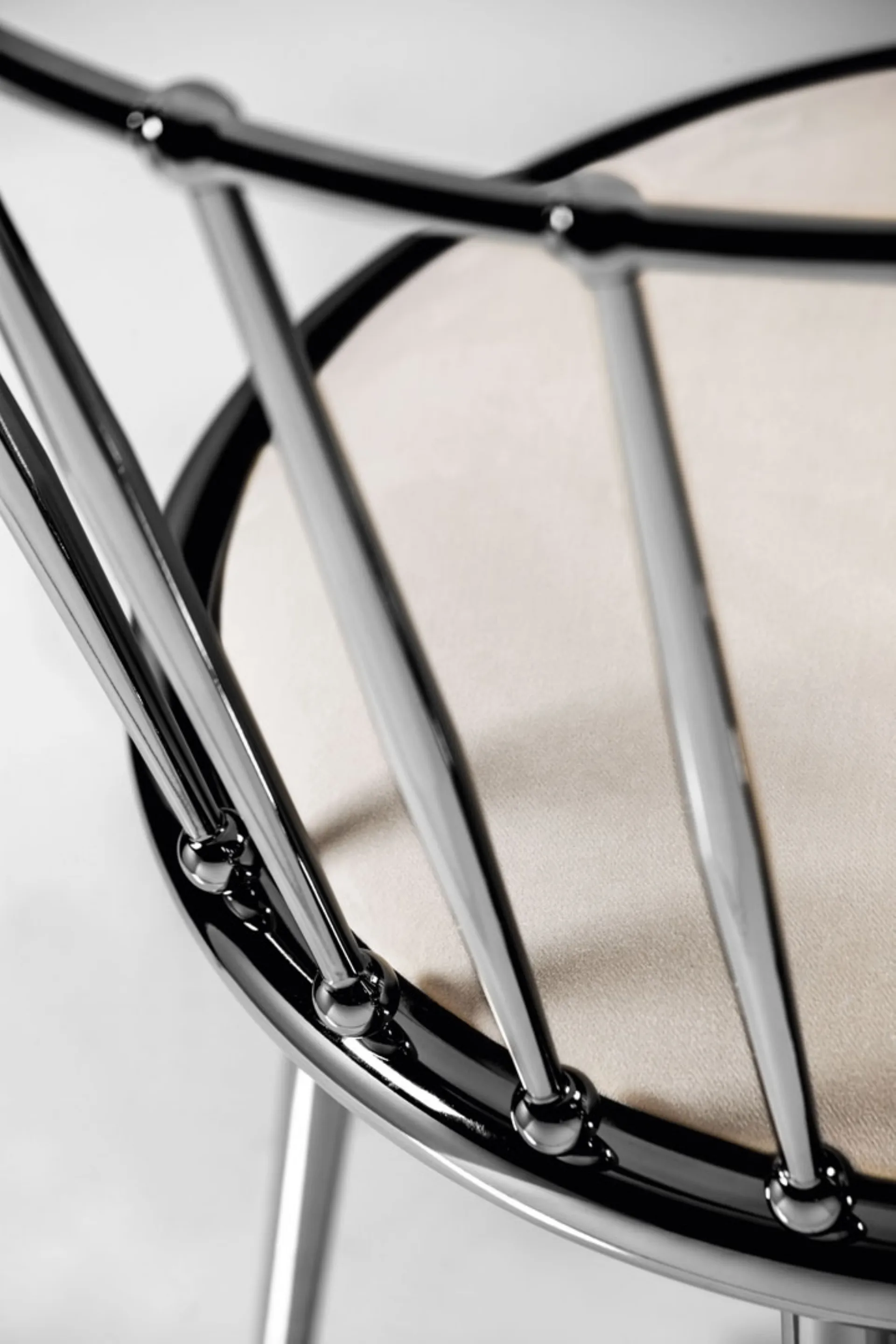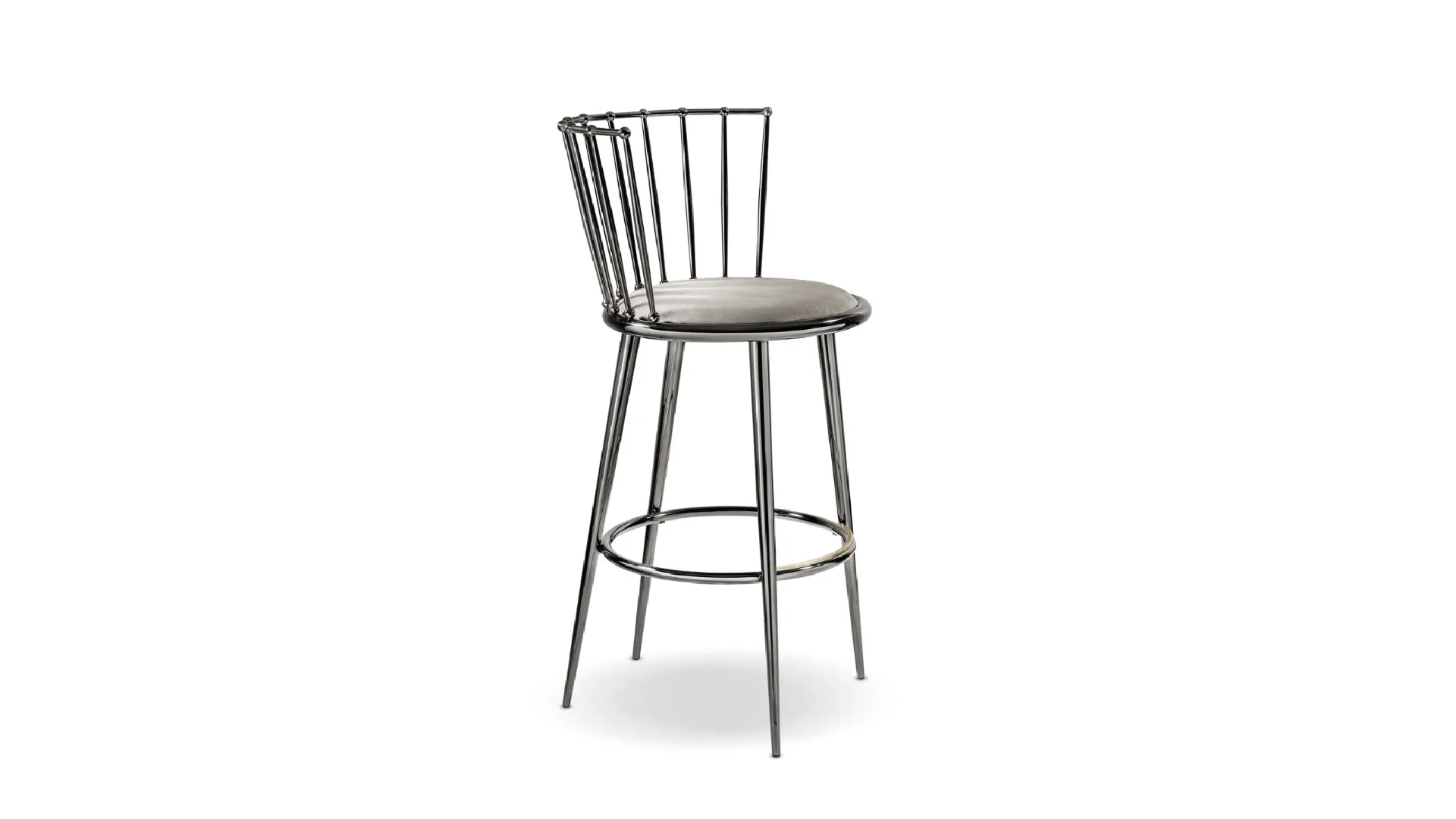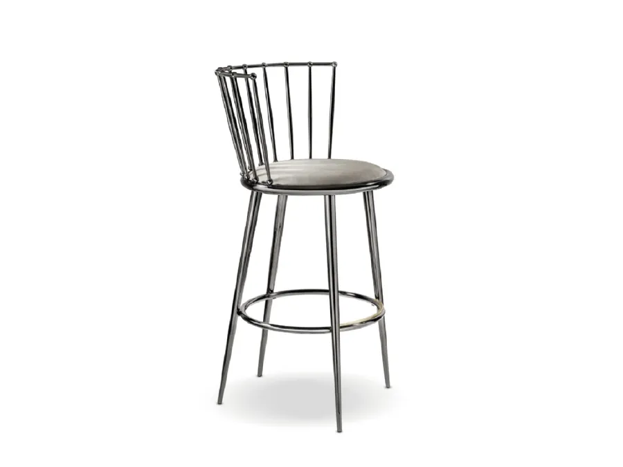 A metal chair like the one shown here furnishes a living room or kitchen area with high aesthetic content, enhancing the spaces. In our showroom, we offer exclusive furniture and accessories, among which you will certainly find the solution that suits you. Modern chairs, whether in wood or upholstered, are complex furnishings, defined by a practically infinite choice of colors, shapes, and patterns. Among the best brands available in our Home Furnishings store, you can find the most beautiful kitchen stools on the market. Contact us and get information about the Cantori's Stool Aurora Bacchettata model shown in the photo.