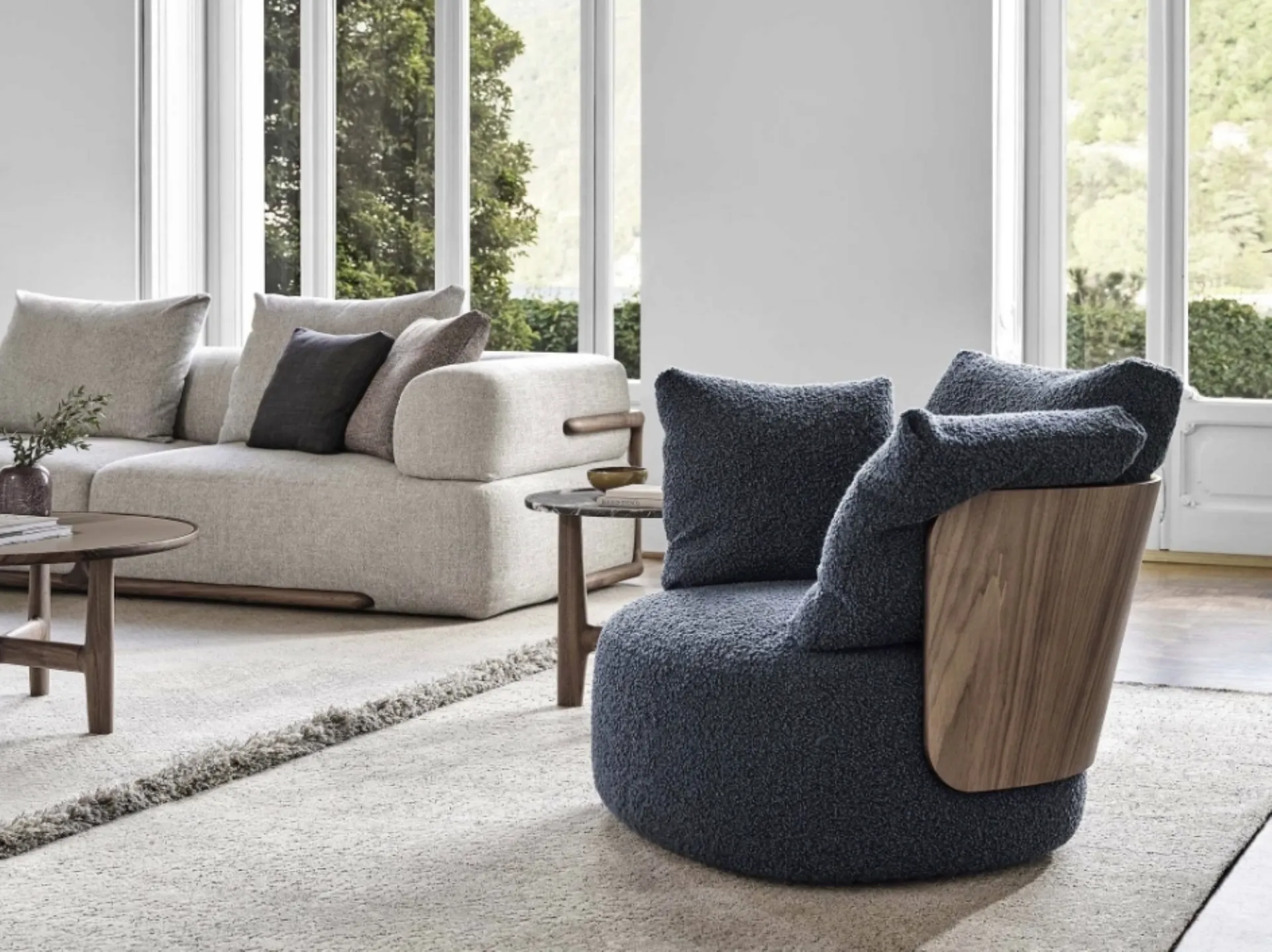 The armchairs are a truly essential design element in different rooms, from the living area to the rest area, environments to be carefully organized. Porada's Calin Armchair: be inspired by our design proposals. Upholstered furniture is furnishing modules around which to spend moments of rest and conviviality. Porada, a leader in the production of armchairs and lounges, has created an elegant and sophisticated upholstery with a fabric structure for the model in the photo.