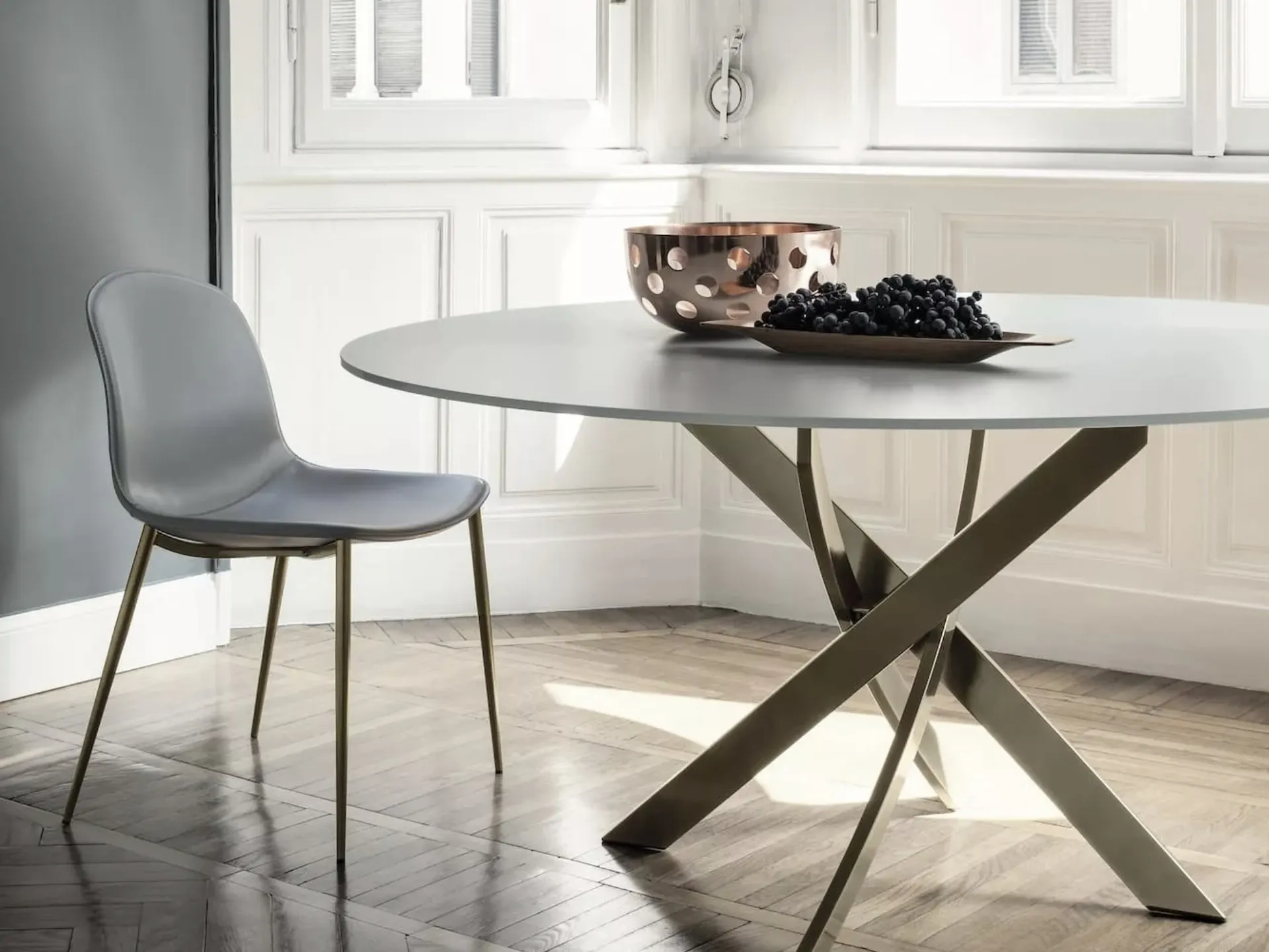 In addition to serving an essential function, these pieces of furniture are able to enhance even a featureless and devoid of accessory elements environment. A leather chair like the one shown here furnishes a living room or a kitchen area with great design, completing the spaces and fully enhancing them. Contact us and discover more about the Seventy leather chair by Bontempi model visible in the photo. Modern chairs, both in wood and upholstered, are complex furnishings, characterized by a practically infinite choice of colors, lines, and patterns. In our showroom, we present exclusive furniture and accessories, among which you will certainly find the solution that suits you. Among the best brands available in our Furniture House store, you will find the most beautiful fixed dining chairs on the market.