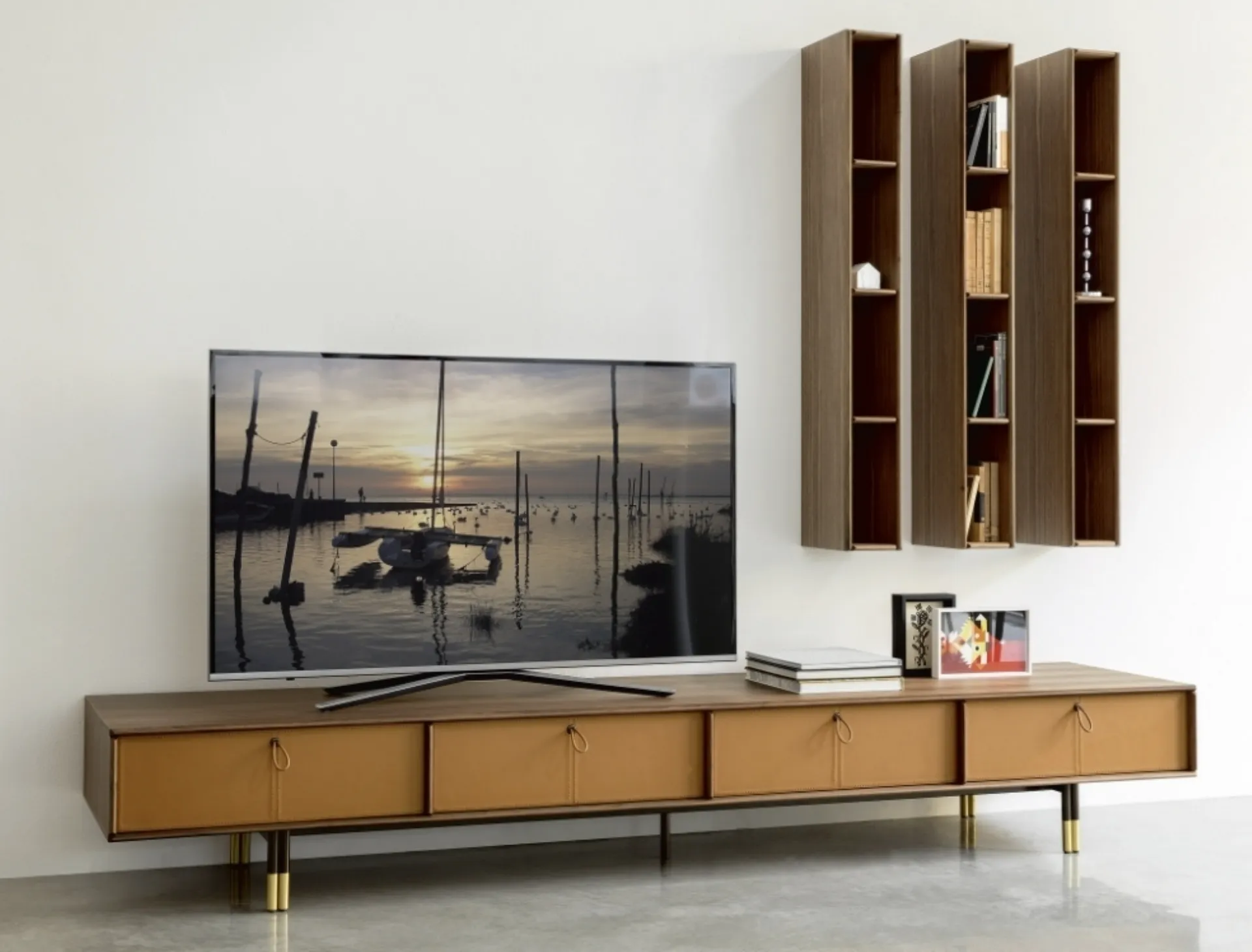 In our rich series of furniture signed by the well-known brand, you will also find wooden TV cabinets to perfectly embellish your living room. Since modern TV cabinets must make good use of the shape and size of the rooms, it will be essential to carefully select the type of system that suits your needs. Porada's modern wooden TV cabinets not only serve to embellish your home, but also to make good use of the shape and size of the rooms. Some of the purposes that TV cabinets must meet in the living room are to keep the television, other multimedia devices, and various objects in view.