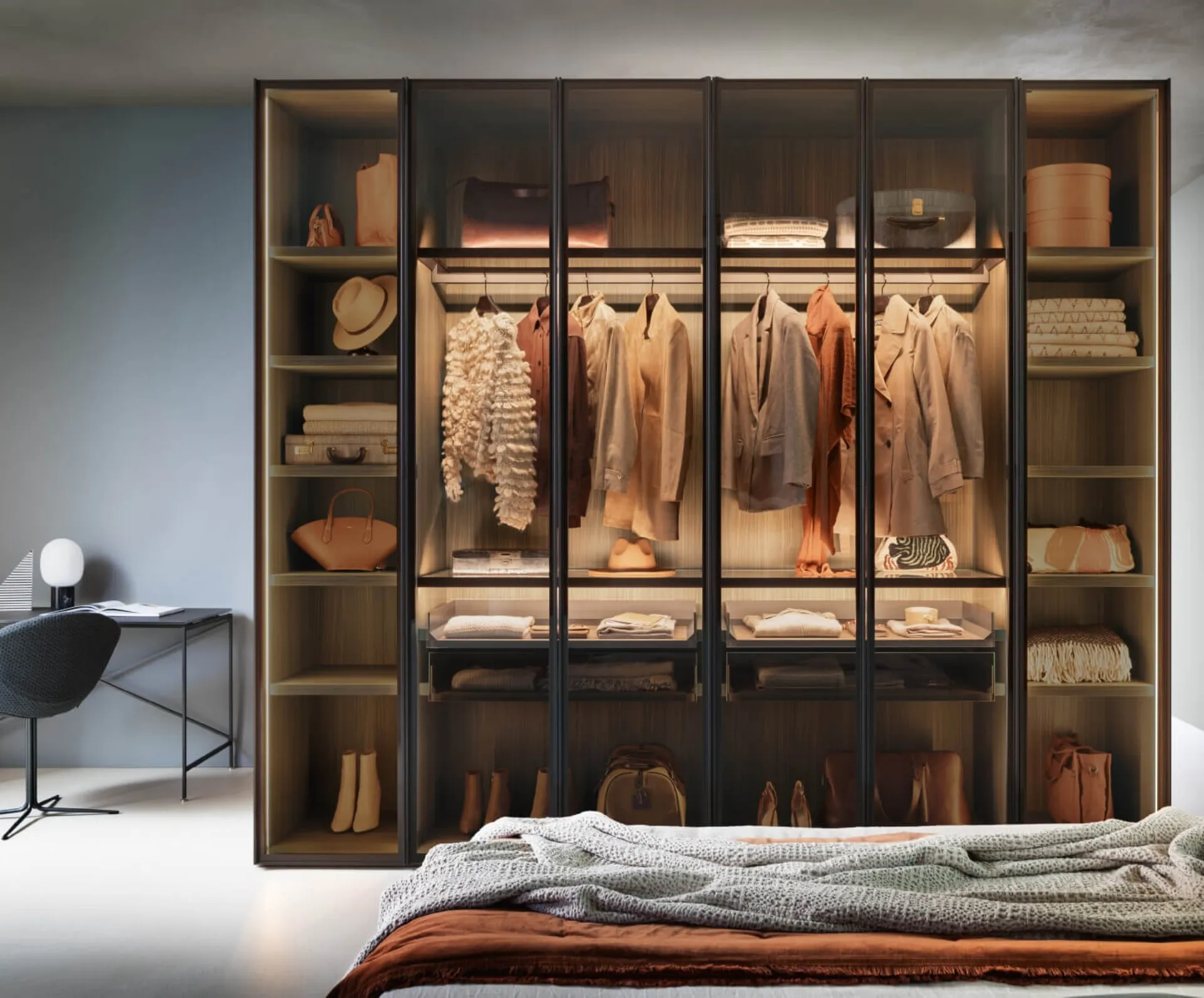 Bookcase wardrobe Alterna SM2504 by Zalf: fill out the form to receive information of all kinds and advice on how to furnish the bedroom you have always wanted. Contact us and get information about our Home Furniture collection: you will have the opportunity to complete the sleeping area with a rich availability of design storage furniture, such as the glass wardrobe in the photo. To furnish a practical and sophisticated room optimally, choose the most beautiful solutions from the best manufacturers, high-quality beds, wardrobes, and dressers.