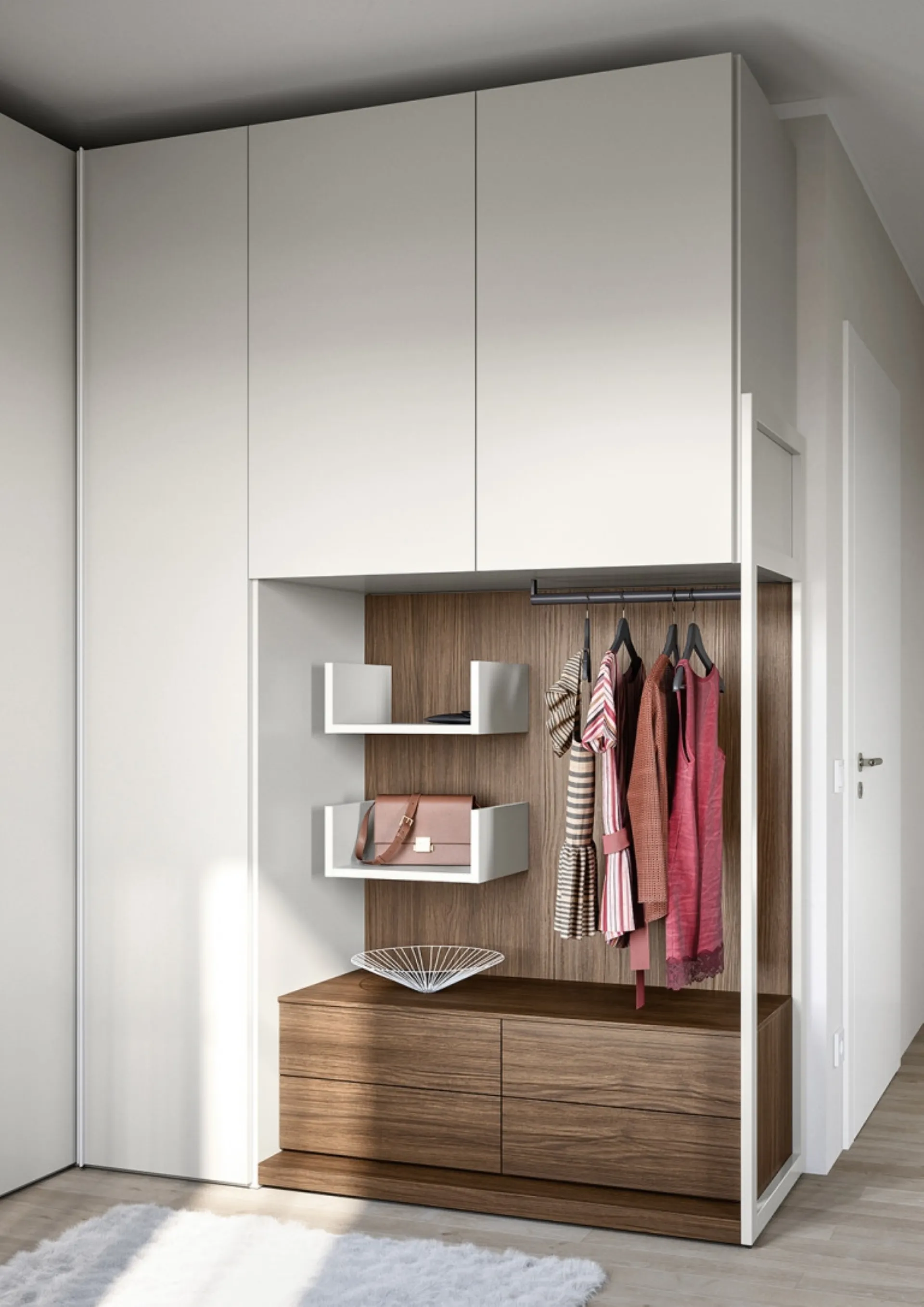 This solution, among the different bridge models with hinged doors from Cinquanta3, is a symbol of enduring solidity, style, and refinement. Contact us to get information on a wide range of Home Furniture to furnish the bedroom with high-quality melamine containers. Bridge wardrobe 09A by Cinquanta3: fill out the form for information and quotes and design your home as you have always dreamed. In our line of modern bridge wardrobes with hinged doors, you will also find the model shown in the photo, ideal for those looking for functionality and style. To complete the furnishing project in a beautiful and high-quality bedroom, we have chosen for you the most original and current Cinquanta3 solutions, different in elegance, size, material, and accessory elements.