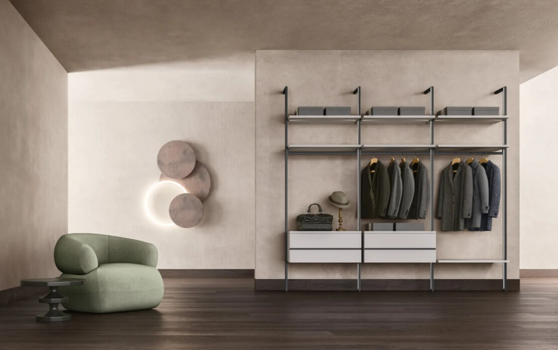 Wardrobes and walk-in closets with hinged doors are designed to furnish the bedroom, ensuring a perfect optimization of space and an exclusive aesthetic research. Contact us for information and quotes and you can complete the sleeping area you have always wanted thanks to a rich offer of modern containers like this melamine wardrobe in the photograph. Walk-in Closet Windy SM2013 by Zalf: fill out the form, contact us and create the relaxation room as you have always dreamed of. The sleeping area is dedicated to rest, so it must be furnished with the best furniture and accessories that can create a relaxing atmosphere.