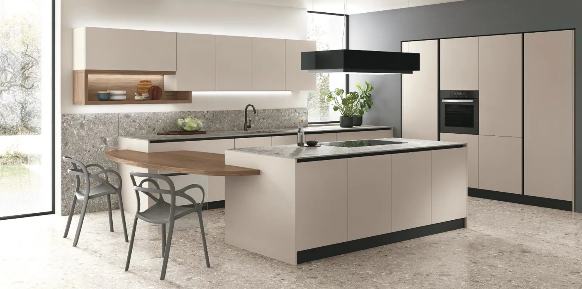 The Modern Infinity Modern 06 kitchen by Stosa is one of the most beautiful solutions of the brand, not only because of its beautiful designs but also because of the material: it is made of Pet to ensure comfort and durability over time. When choosing a modern kitchen, you must prioritize the way you live in your spaces in order to best complete your interior composition. Different modern proposals with a kitchen peninsula await you, ideal for those looking for an intimate, functional, and elegant yet contemporary style.