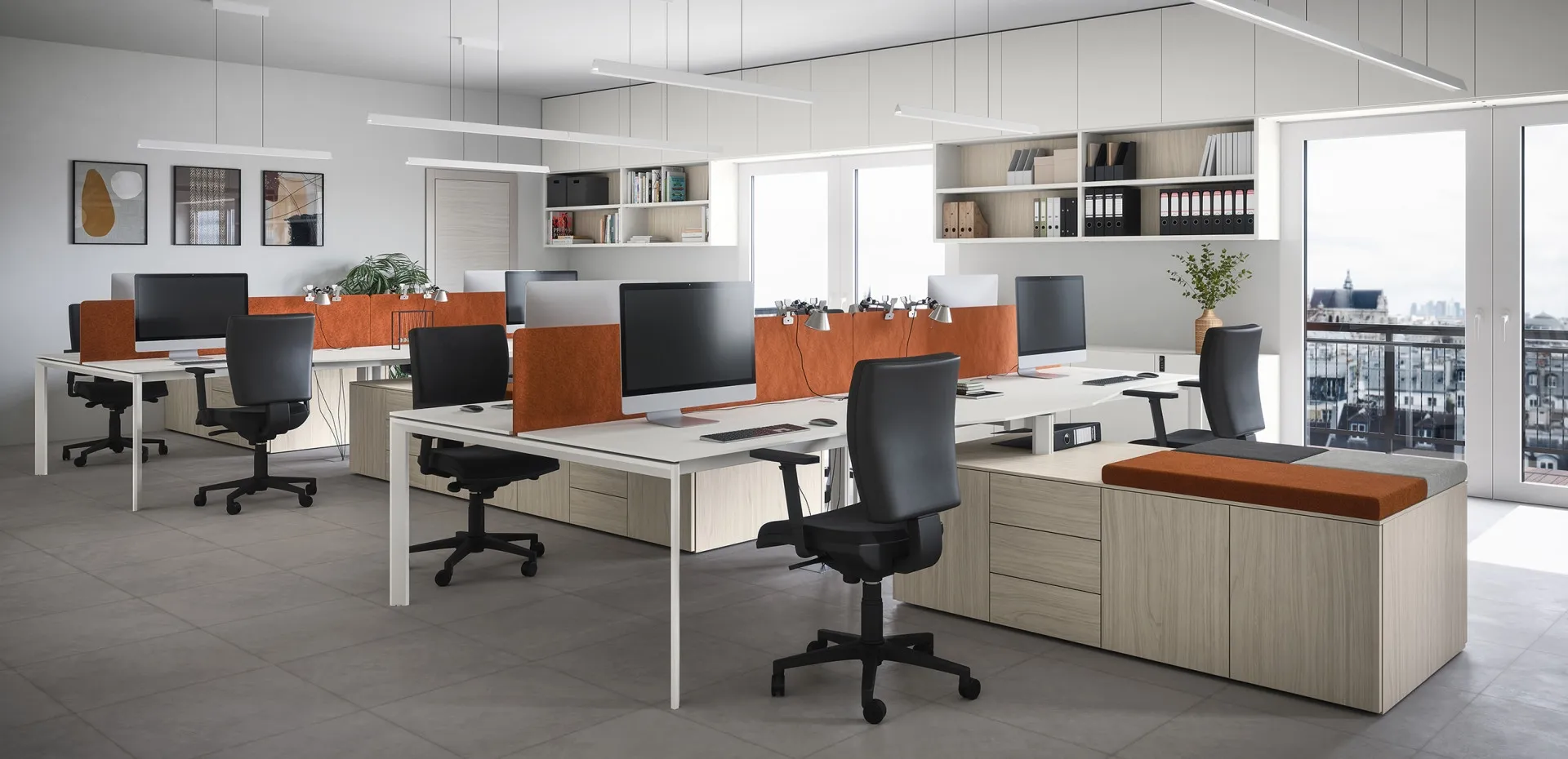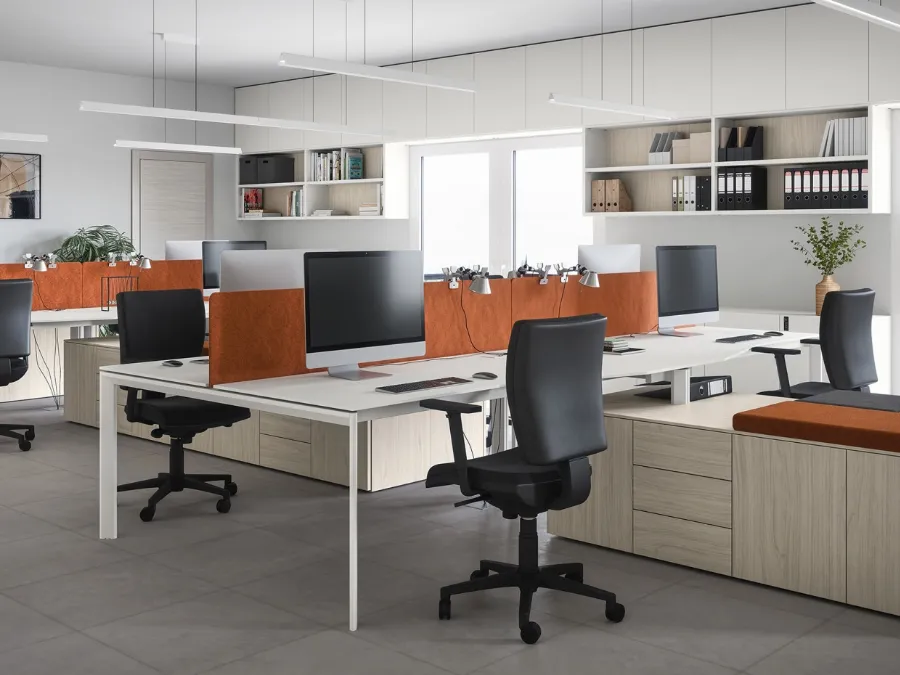 Fine materials, a high aesthetic content, and well-designed lines distinguish the rich series of furniture for work environments by the Cinquanta3 brand. In our store, we present multiple furnishing compositions with Cinquanta3 laminate executive desks, always made of top-quality and durable materials. Cinquanta3's Executive Desk 06B in laminate and metal is ideal for completing offices while ensuring the comfort of those who work there, with a high aesthetic content. Nowadays, office furniture must meet the practicality and comfort needs of workers, as well as the welcoming and professional needs of clients. The well-known and renowned brand always moves in line with individual needs, offering all kinds of laminate office furniture.