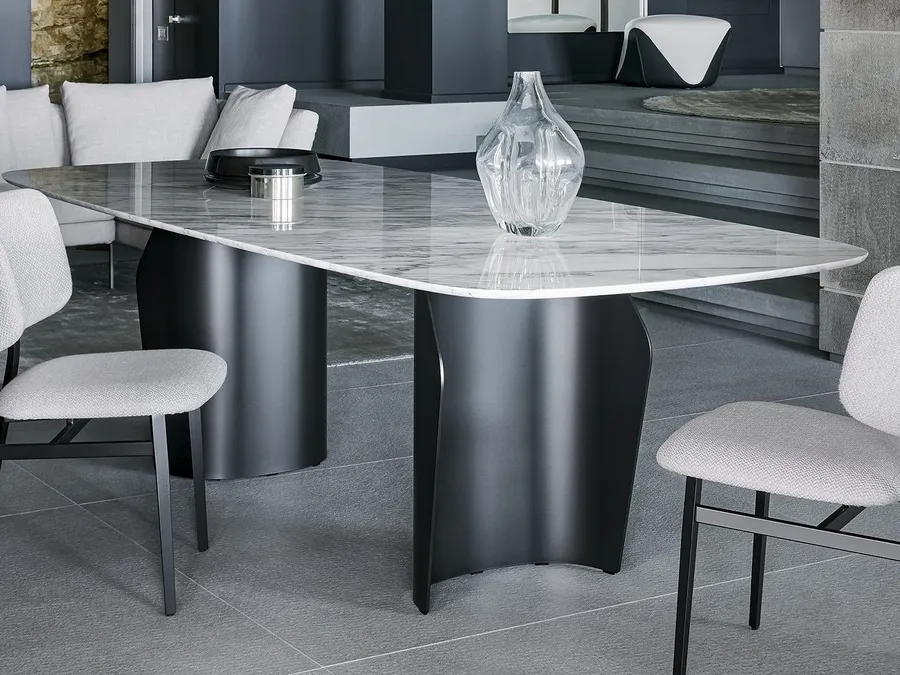 Bonaldo Flame Marble Table: made of precious materials, it is characterized by the sharp lines of the top and an elegant and refined base. Ideal for creating unique combinations with design chairs and accessories, the company's fixed tables are among the most beautiful solutions on the market, perfect for the living room and the kitchen. A model like the one in the image, paired with the right chairs, will enhance the look of the rooms dedicated to conviviality. The well-known and renowned brand Bonaldo, specializing in marble furniture, has chosen a wide variety of finishes, lines, and tones for its line.